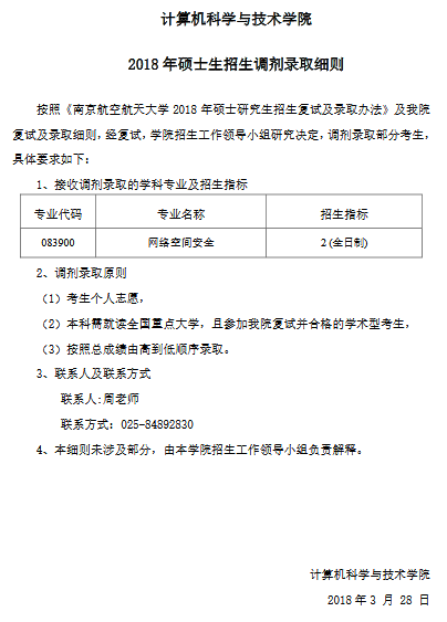 我校3月28日复试后,由于部分考生未报到及未接受待录取通知,部分专业尚有缺额接受调剂,后续我校将在研究生院网站和中国研究生招生信息网动态更新调剂信息,视需要进行招生计划调整并组...