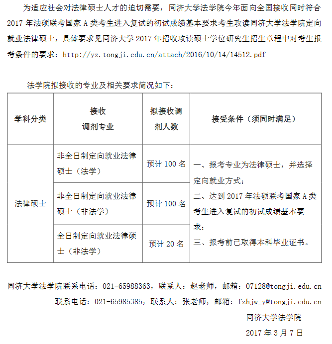 南开大学法学院2017年非全日制法律硕士研究生接受调剂的公告 一、调剂条件 1、第一志愿报考南开大学全日制法律硕士(法学)、法律硕士(非法学)、法学硕士(本科专业为法学专业)专业的...