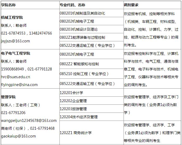 上海应用技术大学2017年研究生招生调剂专业及方向: 调剂考生需符合以下条件: 1、分数:达到国家统一规定的硕士生复试资格线; 2、报考专业:化学工程与技术(学术学位)、机械工...